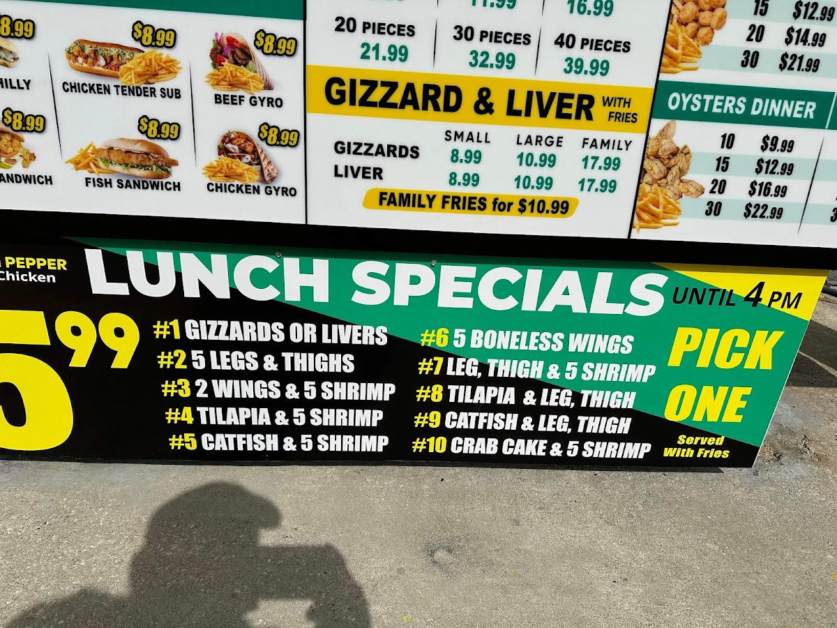 If you're after something more tender, the Tenders menu provides portions from 3 Tenders to 15 Tenders, catering to both smaller and larger appetites. The restaurant also serves Gizzards and Liver for those craving more unique, flavorful bites.